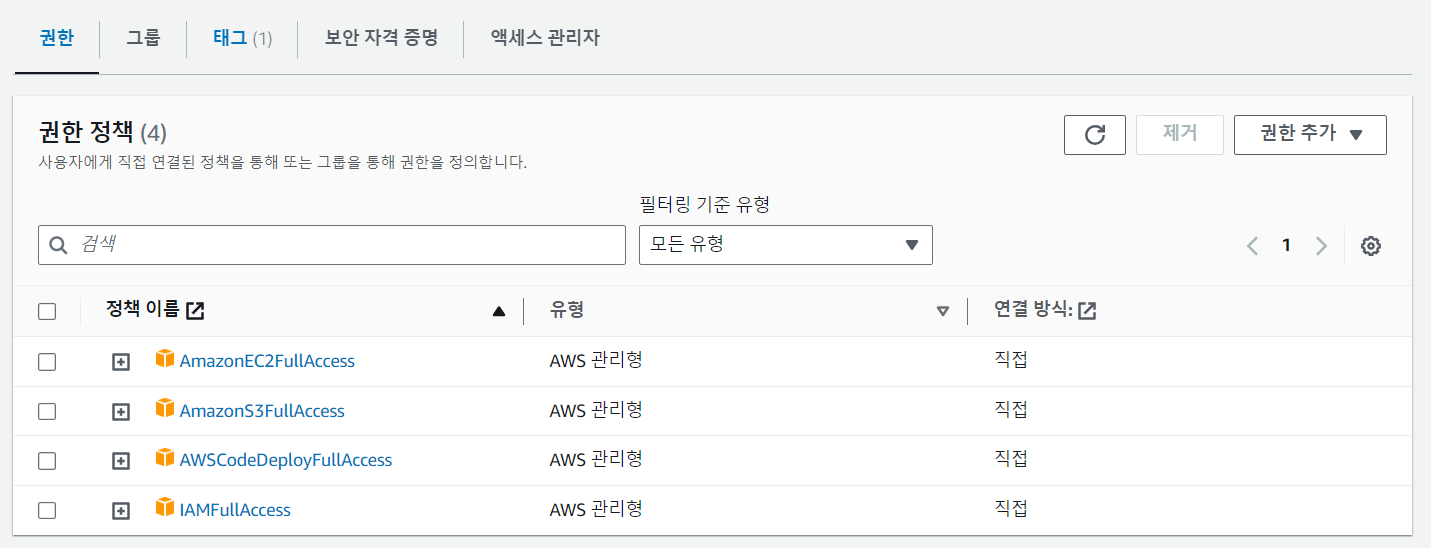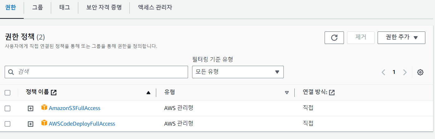 AmazonEC2FullAccess를 주고, codedeploy의 deploy를 생성할 것이므로,