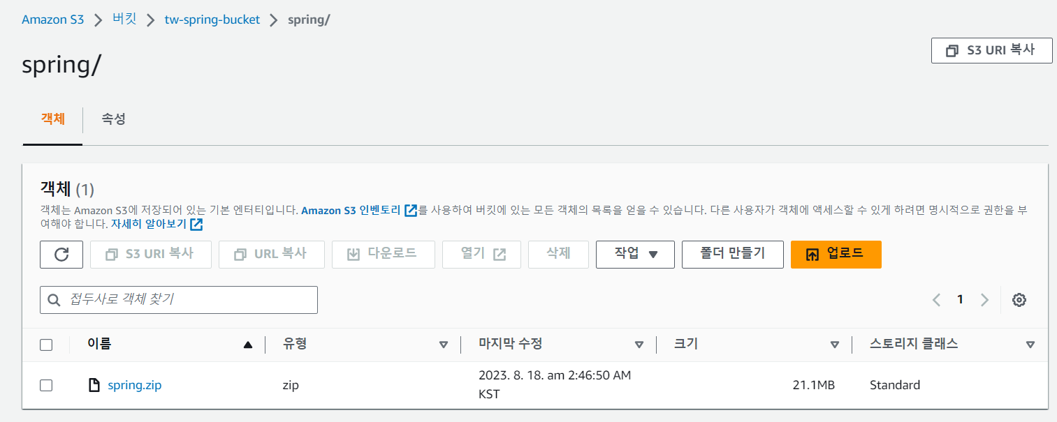 스프링을 빌드해서 나온 zip 파일을 저장하는 버킷을 만들어준다.